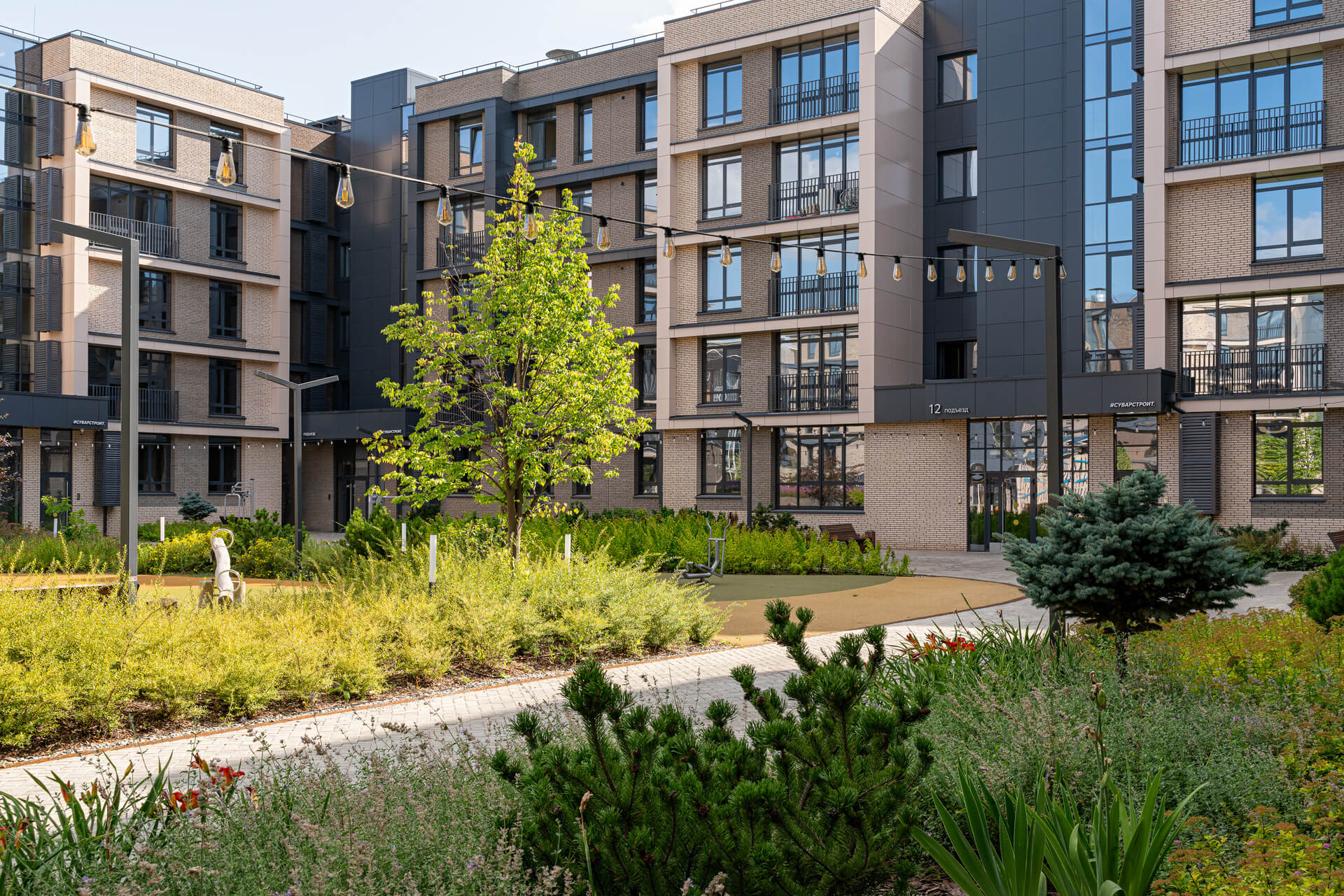 На территории жилых комплексов «Суварстроит» создает обширные зеленые зоны с учетом современных принципов создания природного пространства. Проектируются разнообразные игровые и спортивные площадки, а также уютные места для пикников и отдыха. Спортивные площадки учитывают потребности различных возрастных групп: создаются зоны для занятий йогой и медитации, площадки для кроссфита и занятий спортом для пожилых людей. Накопленный опыт позволил «Суварстроит» создавать стильные и функциональные места общего пользования. Стеклянные входные группы обеспечивают создание безбарьерной среды и добавляют эстетики проектам, а концепция «двор без машин» делает пространство безопасным и закрытым для посторонних.