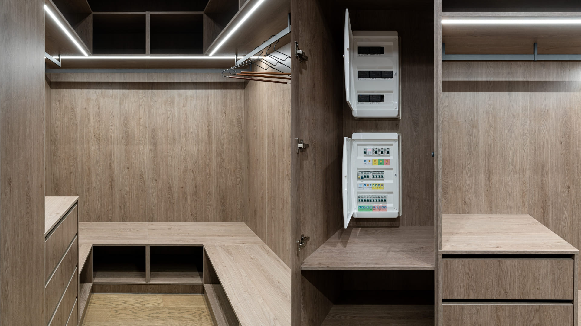 - Подсветки в гардеробных и у зеркал подчёркивают детали интерьера и делают повседневные задачи удобными и приятными